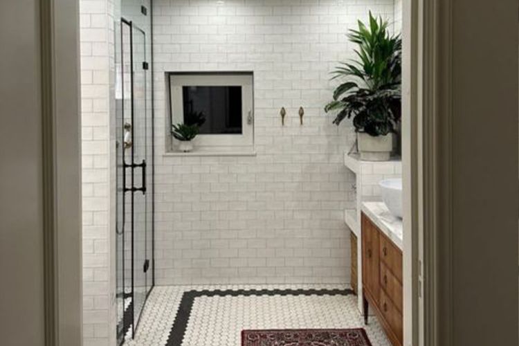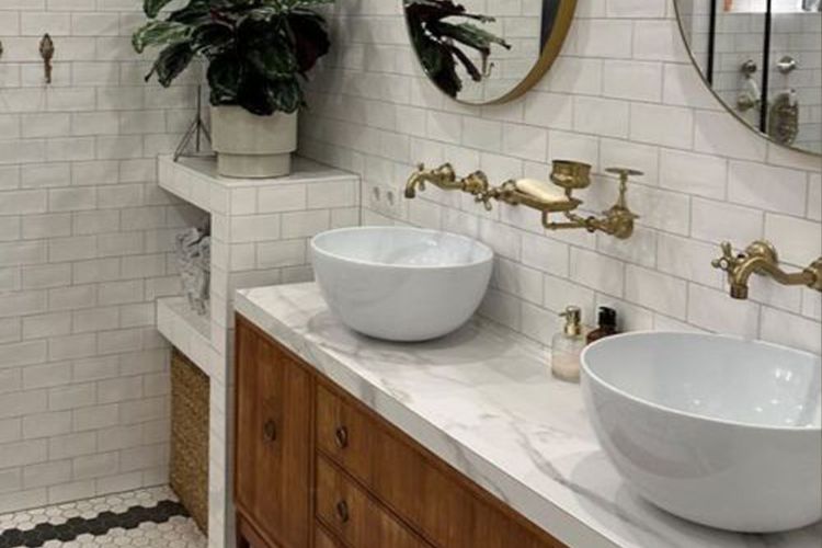 Het is een ware oase van tijdloze elegantie en stijl. We zijn onder de indruk van zijn keuze voor de serie gouden kranen en de witte tegels, die de badkamer een luxe uitstraling geven. En laten we de gouden accenten in de spiegels en accessoires niet vergeten, die een vleugje glamour toevoegen aan de ruimte. De wandtegels hebben een glans afwerking en zorgen voor een vintage, rustgevende uitstraling.
