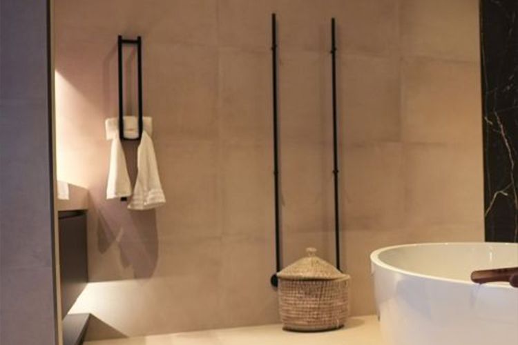 Kosso's badkamer straalt elegantie uit, met mat zwarte details die zowel stijlvol als functioneel zijn. De Elektrische Radiator Stick van Instamat Jay is een perfect voorbeeld. Deze radiator, oorspronkelijk gemaakt van roestvast staal en nu beschikbaar in mat zwart, combineert eenvoud, elegantie en functionaliteit.
