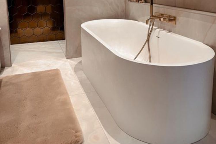 Kortom, het Crosstone Solid Surface ligbad belichaamt luxe, functionaliteit en duurzaamheid in Sarah's badkamer, net zoals zij dat doet.